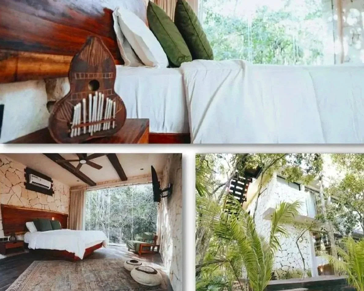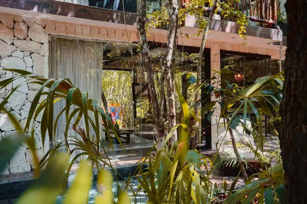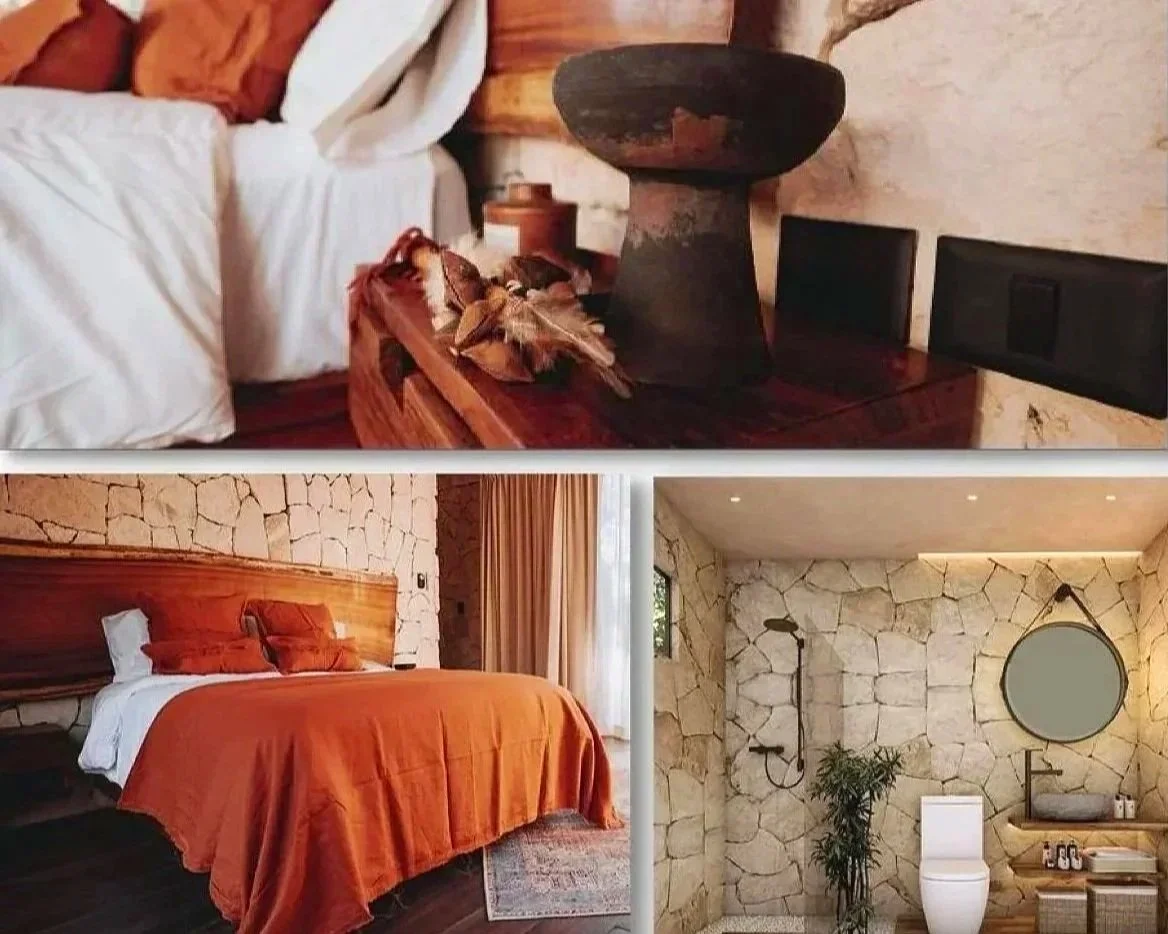 Each villa has three bedrooms, and is consciously crafted with materials sourced from the Yucatan region, including Mayan stone and palapa thatch roofing. The villas are hand-built and blessed by local Mayans, conserving 85% of the local flora and fauna.